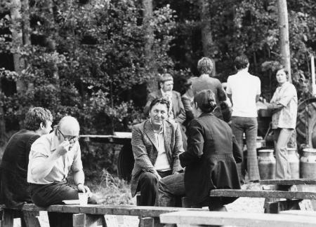 F.v. Toffe Taxell, Per Vilander, Fru Taxell (förnamn icke specifierat) på ÅUFs sommarsamling på Norrskata den 26.7 1975