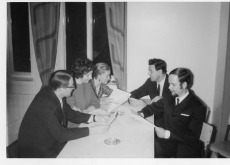 Domarna konfererar på talangjakt i Kimito. På bild: Anita Tulla, Sigrid Stenfors, Bo Stenfors, Paul Jansson och Björn Mårtensson