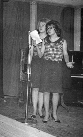 Maija Ekman och Dorothy Fagerström från Pargas sjunger på Talangjaktens uttagstävling i Kimito