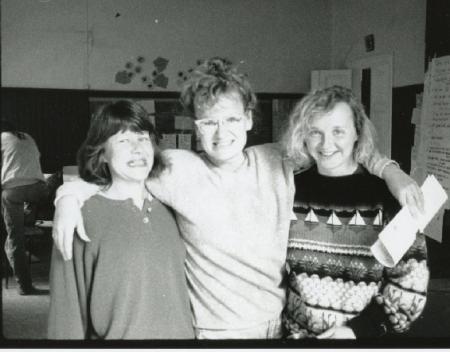 ÅUFs framtidsverkstad den 14-15.9 1991 i Domarby, Pargas. Fr.v. Tora Ehrstedt, Anita Fagerström och Renja Leino.
